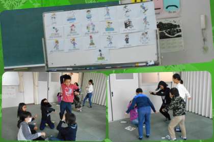 今日、5年生は、外国語で動作・運動の英語を学びました。