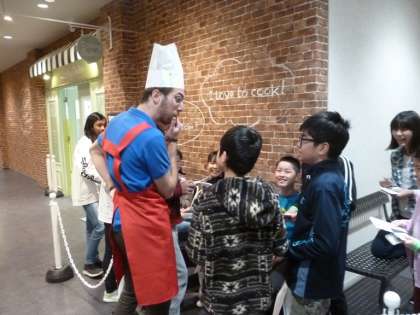 外国人のインストラクターと対話しながら楽しんでいる様子が