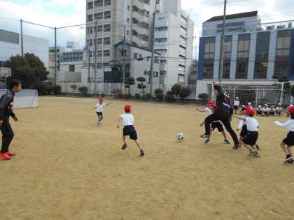 セレッソ大阪のコーチが太子橋小学校にやってきて