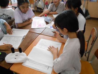 また、6年生の教室では「にこにこ班リーダー会」が開かれ、木曜日の朝に行われる「にこにこ班活動」の遊び内容について計画を立てていました。