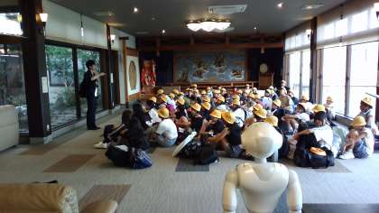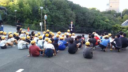 開舎式でペッパー君の説明を聞き、部屋に荷物を置いた後、避難訓練をしました。みんな落ち着いて行動できています。