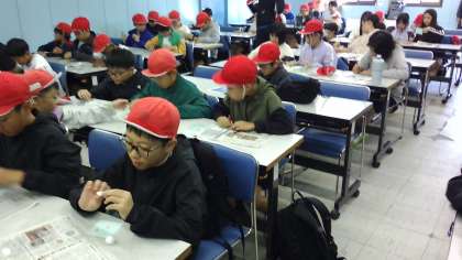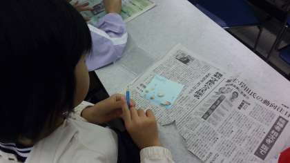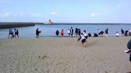 海岸できれいな貝殻を見つけて、思い出の「シェルメモリー」を作成中!