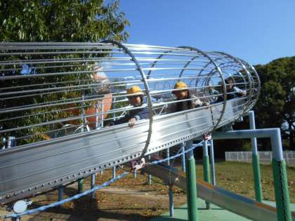 『やったねの木』は、高さ12メートル・全長30メートルの超大型ローラーすべり台が2基交差しているスリルいっぱいの遊具です。
