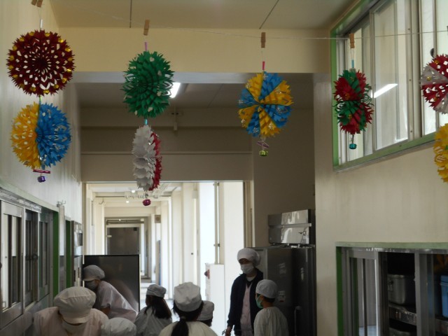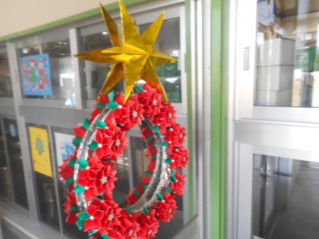 給食室がクリスマスの飾り付けで彩られました。