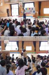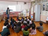 おまわりさんが来校してくださり、『交通安全指導』をしてくださいました。 講堂に模...