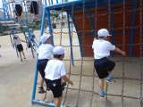 1年生が真っ新な体操服に着替えて、校庭で元気いっぱい遊んでいました! 校庭には、...