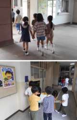 今日の『がっこうたんけん』では、2年生と1年生とが一緒に手をつなぎ、仲良くたんけ...