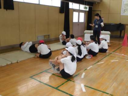 今日から新体力テストが始まります。昨日の雨で運動場で行う種目はできませんでしたが、講堂(室内)でする種目については行われました。長座体前屈、反復横跳び、立ち幅跳び、腹筋などをしました。明日は運動場でもできると思います。