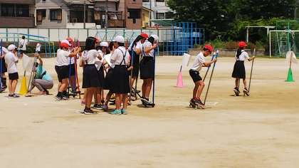 昨日から始まっているミナミンピックの様子です。竹馬・5秒間走・立ち幅跳びの様子です。自分でカードを持って目標を立てて頑張ります。