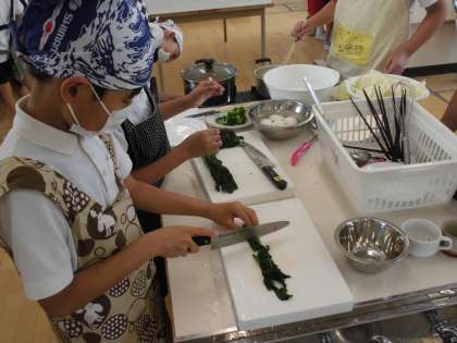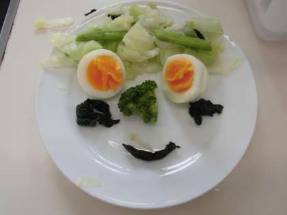 5年生が家庭科の学習で調理実習をしました。初めての実習です。ゆで卵とゆで野菜によるサラダを作りました。初めて包丁を持つ子どももいたのではないでしょうか?けがもなく無事に完成したようです。盛り付けも自分たちで考えてかわいく仕上がりました。とてもおいしそうにできました。