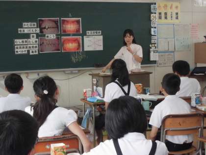 2時間目と3時間目に歯と口の健康教室を6年生がしました。歯科衛生士の方に来ていただき、指導を受けました。永久歯が生えてそろそろそろってくる頃でしょうね。ずっと使っていく歯です。歯みがきの仕方を、もう一度確認する意味でもこの学習はとても良い機会だと思います。しっかり歯みがきをして大切にしてほしいと思います。