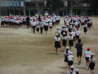 先週の火曜日に予定されていた避難訓練が、悪天候のため延期され本日実施しました。今回の訓練は、地震・津波の訓練です。まず、地震が起きた時の訓練をしました。机の下にもぐり頭を守ります。そして、運動場に避難します。素早く静かに避難をすることができました。ここで、教頭先生の話を聞きました。地震の怖さについてのお話がありました。その後、津波を想定した訓練です。校舎の最上階(4階)へ上がりました。すべて移動が確認されたところで、教頭先生から同じく津波の怖さのお話もありました。東日本大震災の時のあの恐ろしさを忘れないようにしてほしいと思います。ご家庭におかれましても、今回の避難訓練をきっかけに話し合ってほしいと思います。