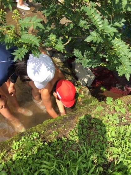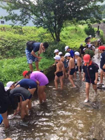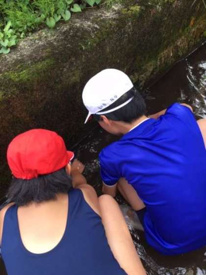 東鉢伏に来て、はじめての活動です。なかなか、捕まえることが出来ずに苦戦しましたが、最後には全員が魚(アマゴ)をつかむことができました。とったアマゴは、バーベキューコンロで焼いていただき、自然の中で美味しく食べました。