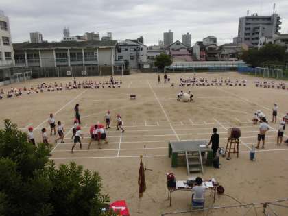 運動会全体練習2回目です。今回は、入場行進と退場の練習、整理体操、全校競技、応援合戦の練習をしました。全校競技は、「大玉おくり」です。応援合戦の練習も応援団を中心に大きな声を出して、頑張っていました。前回は、講堂での練習でしたが、全校児童が運動場に出ての練習は初めてです。応援団だけでなく、みんなで大きな声を出して運動会を盛り上げてほしいと思います。