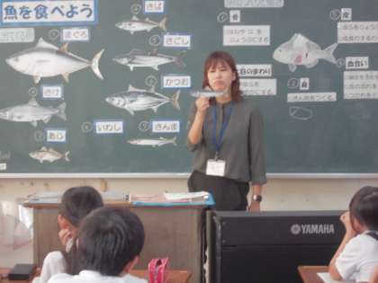 4年生が、栄養教育の学習をしました。「魚を食べよう」というテーマで学習をしました。いろいろな魚の種類を知りました。そして、魚のはたらきを学習しました。魚のいろいろな部位によって栄養や働きが違うことを学習することができました。また、魚に含まれている油(DHAやEPA)の働きも知ることができました。