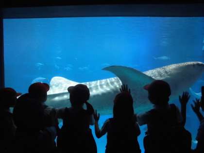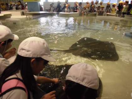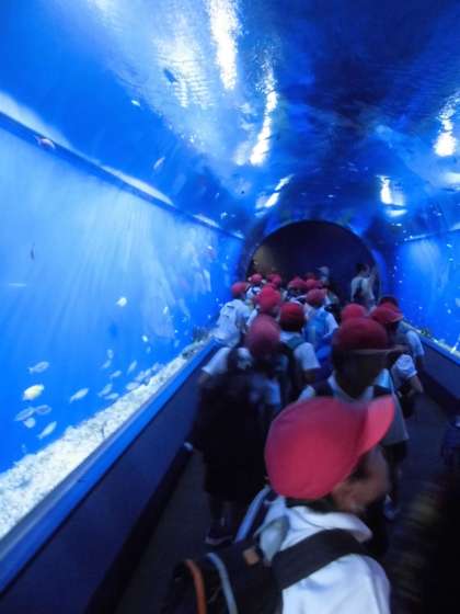 3・4年生が遠足に行きました。行き先は海遊館です。とてもいい天気でした。海遊館では、いろいろな海の生き物を見ました。餌やりの時間に遭遇して、餌やりの様子を見ることもできました。ふれあい広場では、サメやエイを直に触れることができました。家の人に作ってもらった弁当をおいしく食べました。