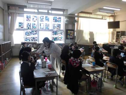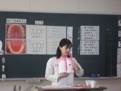 2時間目に2年生のはみがき指導がありました。歯科衛生士の先生に来ていただき、正しい歯みがきの仕方を教えていただきました。歯の汚れのチェックをして、その歯みがきをします。そして、磨いた後の歯の汚れもチェックして比べました。きっと、汚れに驚いた子もいたことでしょう。これから生えかわる永久歯を大切にするためにも、しっかり歯みがきをしてほしいと思います。