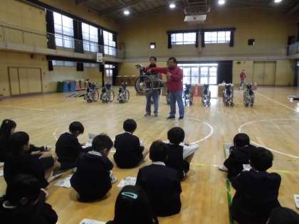 3年生が車いす体験をしました。リハビリテーションセンターの方に来ていただき、車いすの種類を教えていただいたり、車いすの操作の仕方を教えていただいたりしました。車いすを使う生活は普段はしません。でも、日常生活で使っている人たちがいます。その人たちの生活体験をすることは、子どもたちにとっては貴重な体験となります。少しの段差でも移動することが大変であることが、実際に車いすを操作することでよくわかったのではないでしょうか。