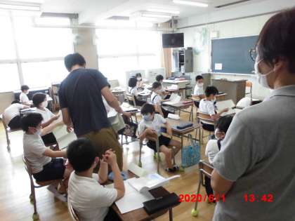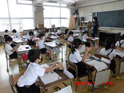 お昼登校の子どもたちは、給食を食べ終えると早速授業が始まりました。