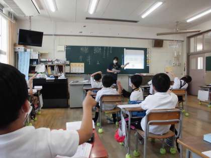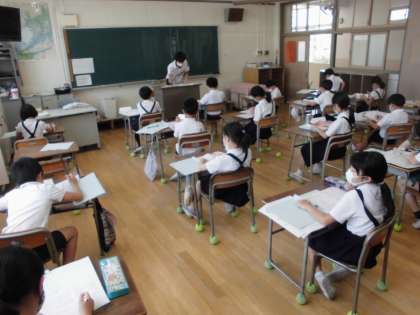 お昼登校の子どもたちは給食を食べると、すぐに勉強が始まりました。
