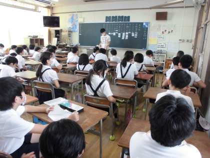6年生、5年生、4年生の様子です。早速、学習を始めたり所属する委員会やクラスの係りを決めたりしていました。