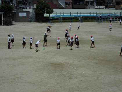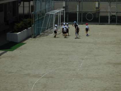 夏が近づき、暑い日々が続いていますが、高殿南の子どもたちは元気に運動場で遊んでいます。
