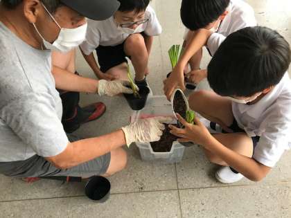 旭区の花である「ハナショウブ」を本校でも今年から育てることにしました。区役所から咲き終わったハナショウブや土を持ってきていただき、環境美化委員会の児童で株分けをしました。これから水やりをかかさずに、しっかり育てて、来年にはきれいな花を咲かせていけたらいいですね。