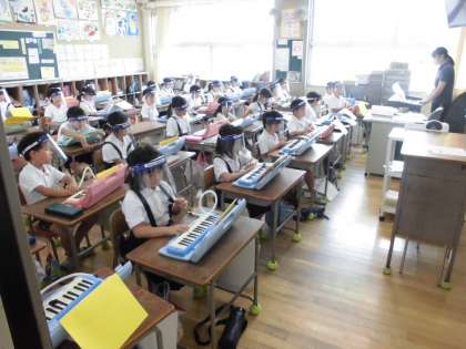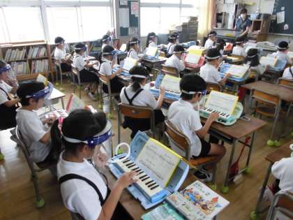 今までは、新型コロナウイルス感染症の影響によりできませんでしたが、感染対策を講じたうえでピアニカの練習にも取り組み始めています。