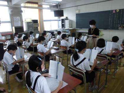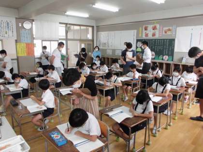 6時間目、4年生で授業研究会があり、高殿南小学校の先生方、そして講師の先生方が4年生の学習の様子を参観しに行きました。