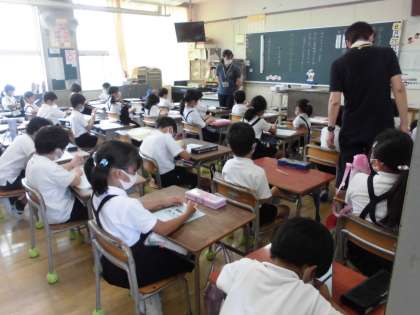 放送による始業式の後、各教室では夏休みの振り返り、作品や課題の提出、2学期の話など、さっそく様々なk津堂に取り組んでいます。