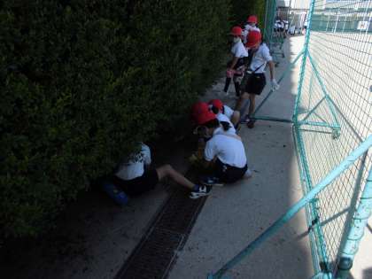 植木のところには小さな草がたくさんありました。砂と落ち葉を分けながら、細かい所まで頑張りました。