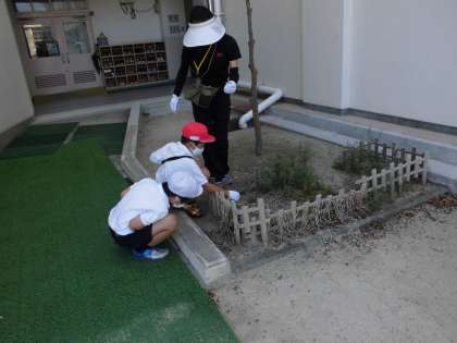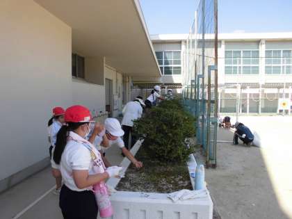 2年生は、校舎前の植木周辺から給食室前あたりまでを担当しました。
