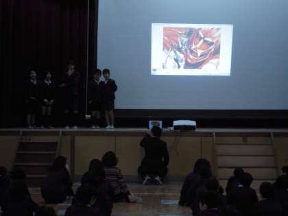 講堂での集会でいろいろな特技をもった児童が、披露しました!