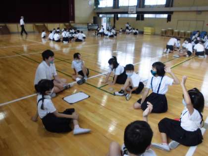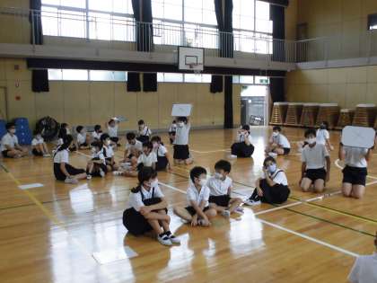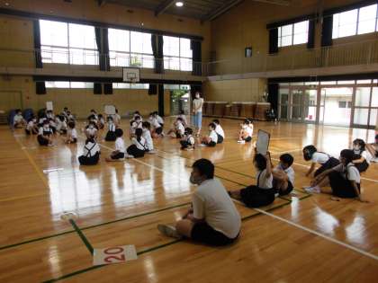 今日の集会は、なかよし班対抗の〇×クイズでした。