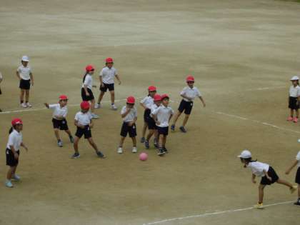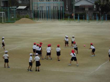 投げたり、受けたり、よけたりとみんなで楽しく活動することができました。