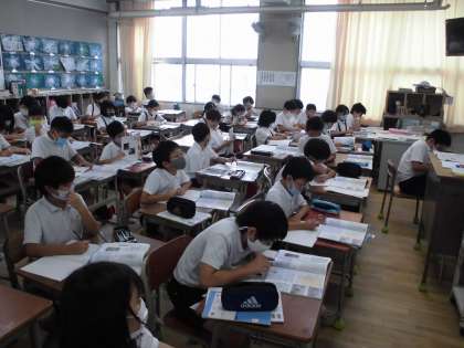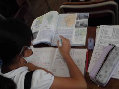 社会の時間、「台風や高潮から身を守るための取り組み」について学習しました。過去の映像をみたり先生の話を聞いた後、自分が調べたり考えたりしたことをノートにまとめました。みんな集中して取り組んでいました。