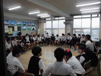 5年生の子どもたちはしっかりと気持ちを切り替え、集中して勉強に取り組んでいました。そして、6時間目は子どもたちも先生も一緒に楽しく遊びました。
