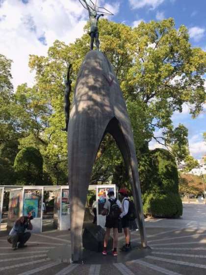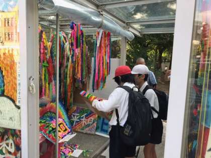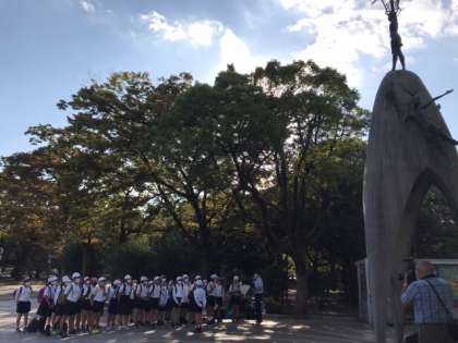 平和の集いでは、誓いの言葉、全員の合唱とともに、みんなで作った千羽鶴を捧げました。