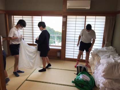 部屋の片付けもみんなで協力して行いました。きれいにして部屋を出ます。