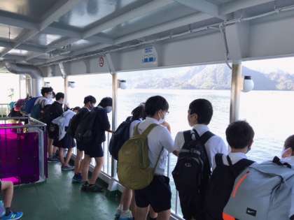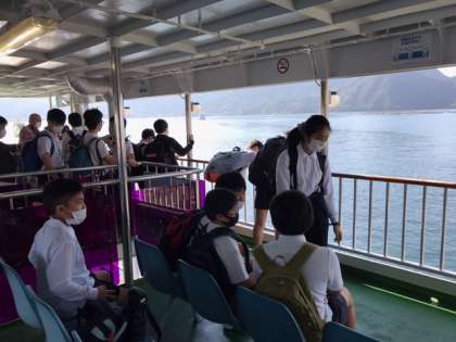 みんなでフェリーに乗って海の風を感じています。
