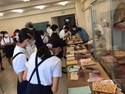 削ったり飾りのハンコを押したりしながら、伝統のしゃもじ作りにチャレンジしました。