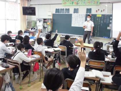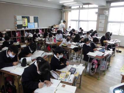 「竹取物語」や「枕草子」などの有名な作品をみんなで音読したり暗唱したり、また、現代には使われない難しい言葉を調べたりしながら、古文についての楽手を進めていきました。短い間で、いくつも古文を暗唱している姿を見て、とてもびっくりしました。