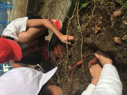 小ぶりでかわいらしいサツマイモが、たくさん収穫できました。