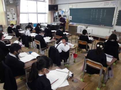 3年生と4年生も、冬休みの課題の確認と答え合わせをしていました。