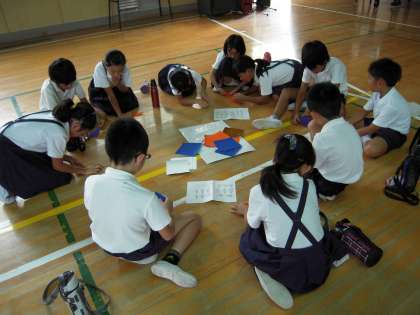 そして、折り紙で「平和」の願いを込めて、みんなで鶴を折りました。