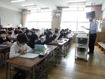新しい先生の話を聞く姿がとても立派でした。