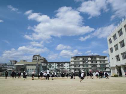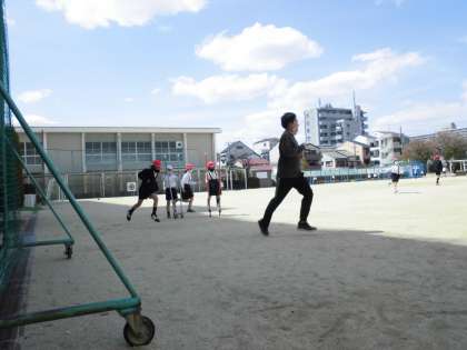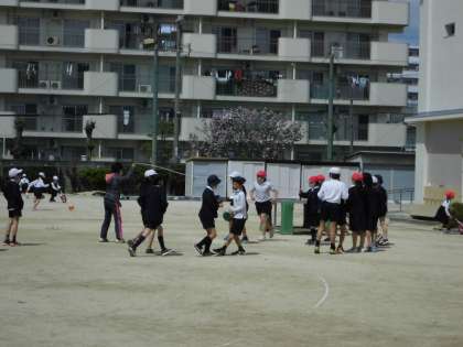 天候にも恵まれた今日も、昼休みの運動場には、楽しそうに遊ぶ子どもたちの姿がありました。先生も一緒に交じってなわとびや鬼ごっこもしました。