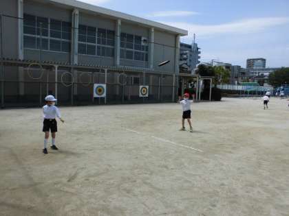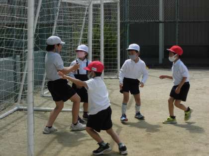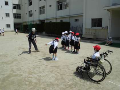 運動場で、大縄跳びをしたり、フリスビーをしたり、高学年のお兄ちゃんに遊んでもらったりして、楽しく過ごしました。