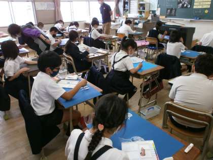めあては「にじみ ぼかし かたつむりの線のかき方で 海月をかこう』でした。