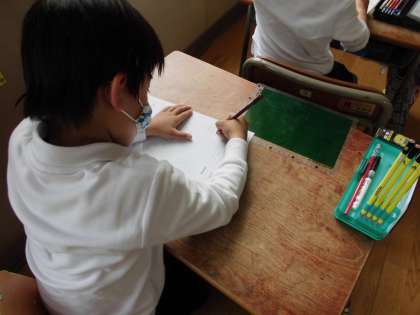今日は国語科の学習で、とめ・はね・はらいなどの学習をしました。一筆一筆、丁寧に書いていました。